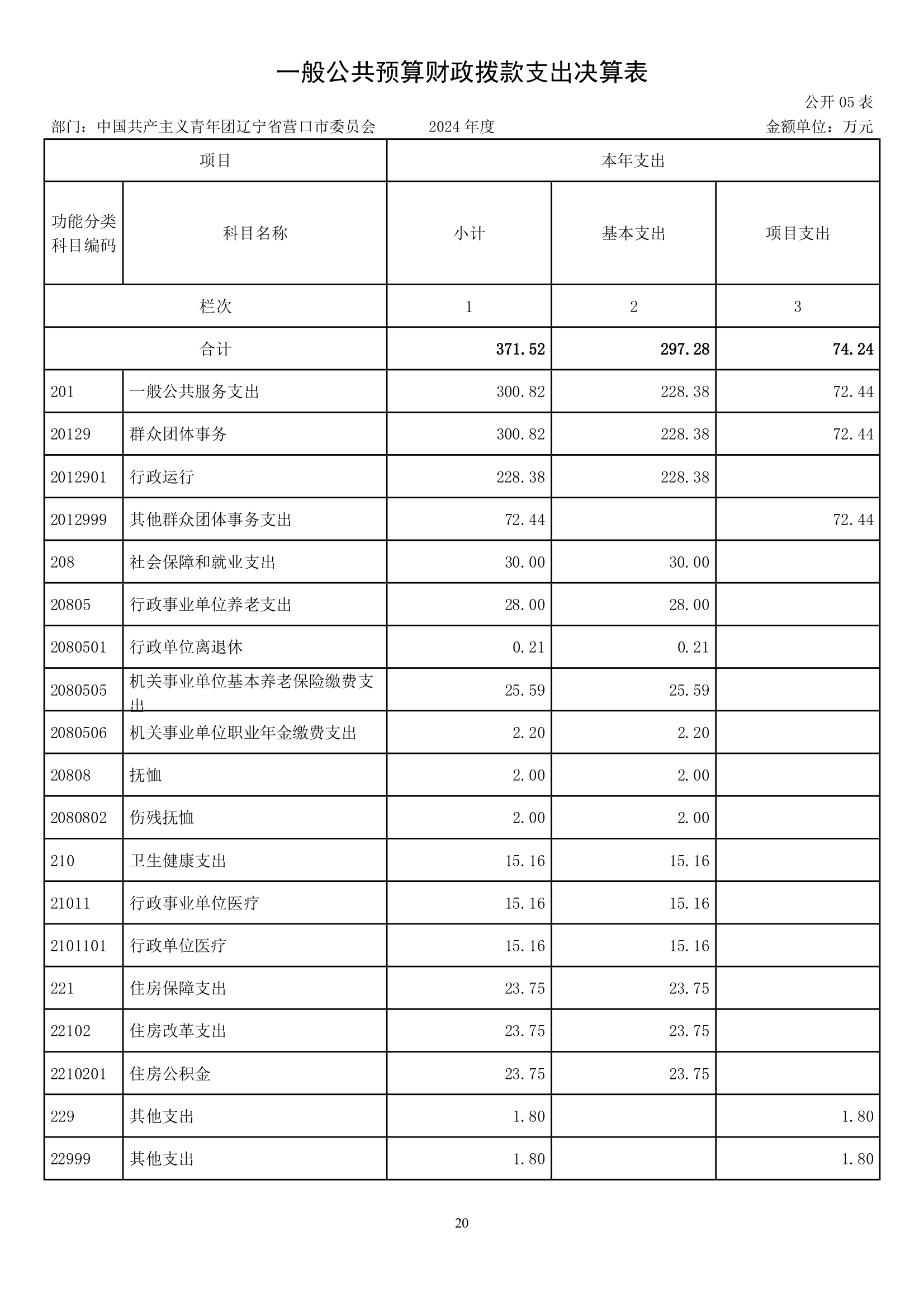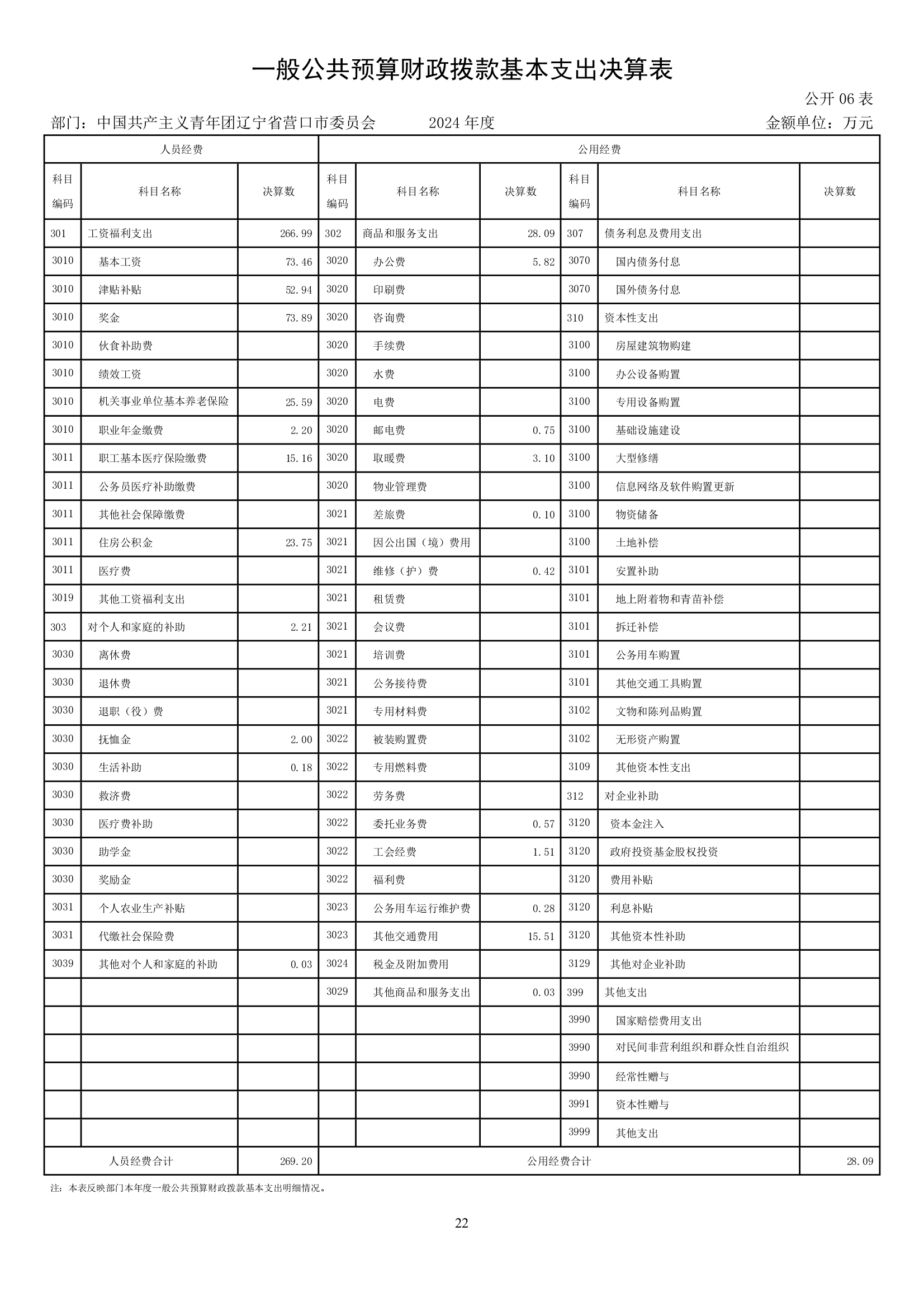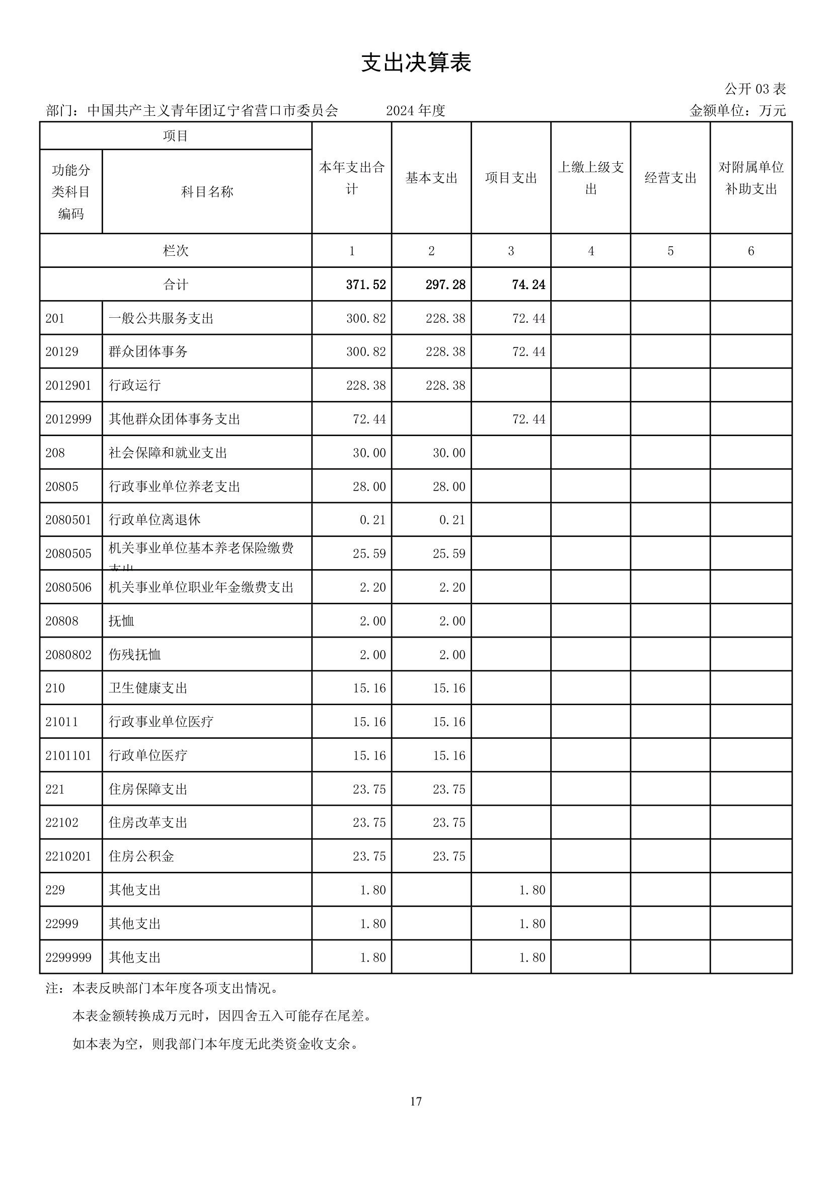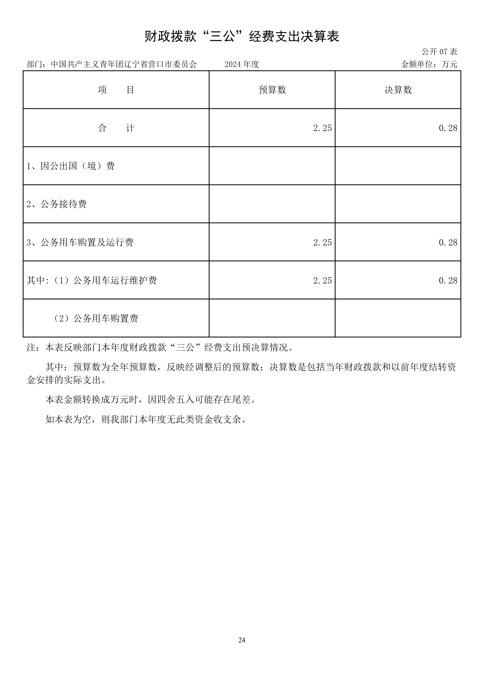 中国共产主义青年团辽宁省营口市委员会2024年度部门决算