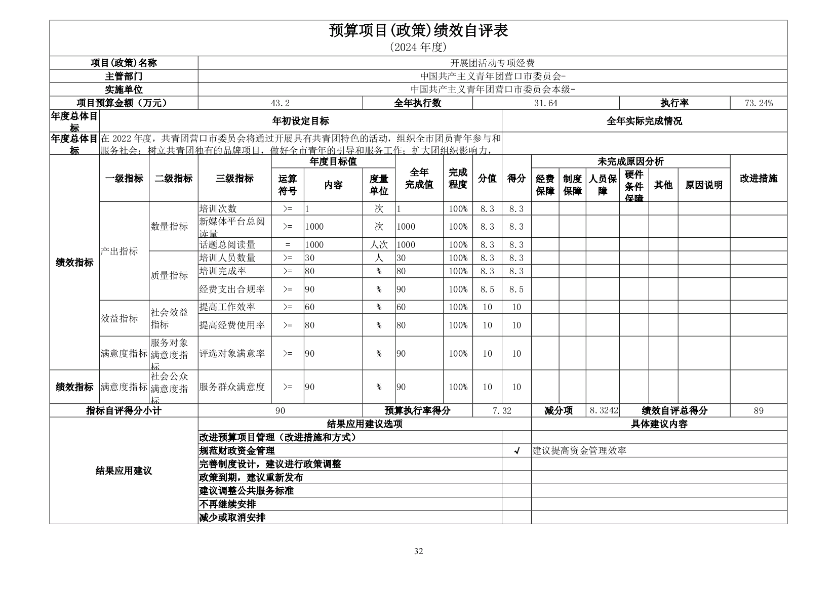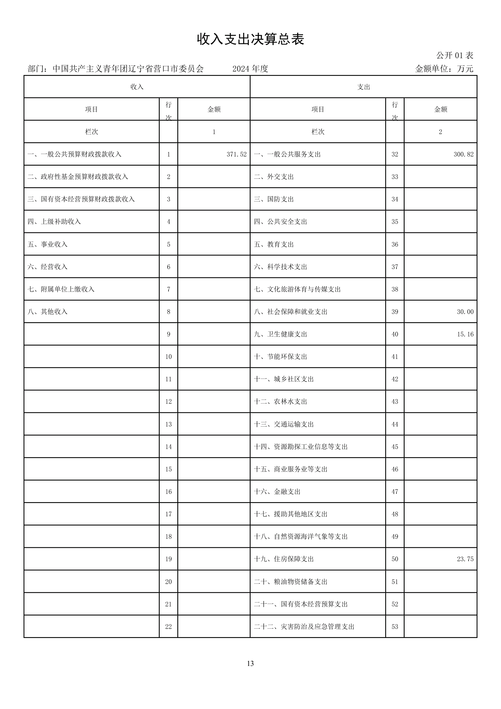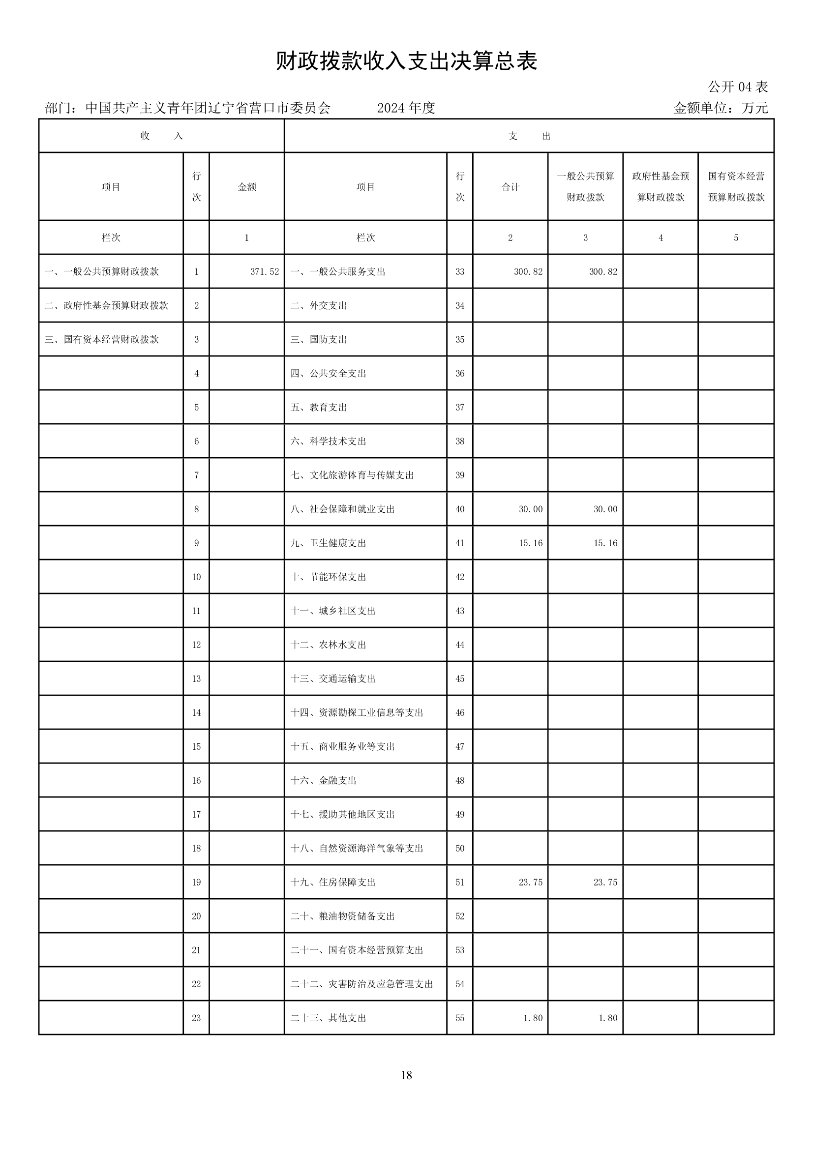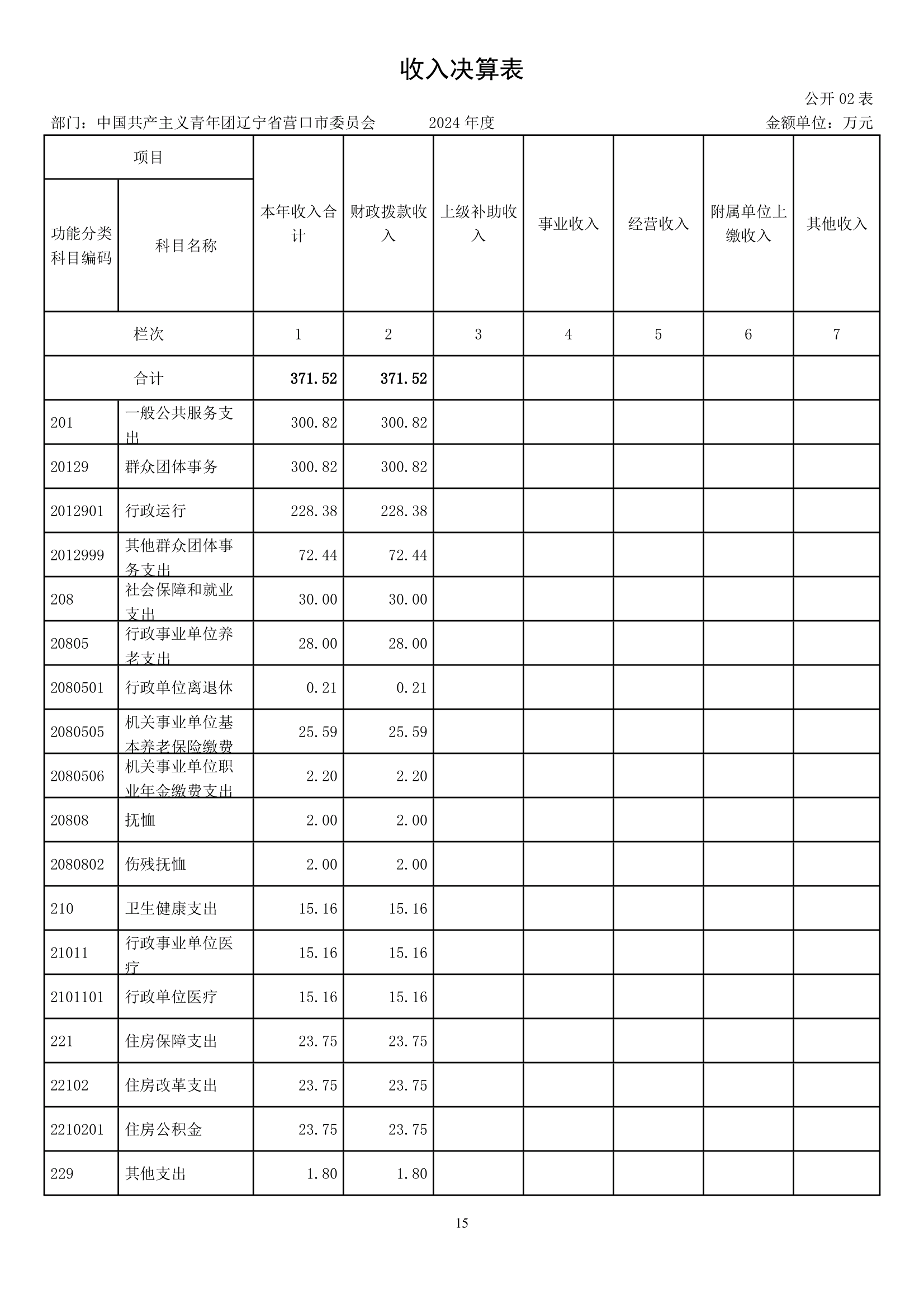 中国共产主义青年团辽宁省营口市委员会2024年度部门决算