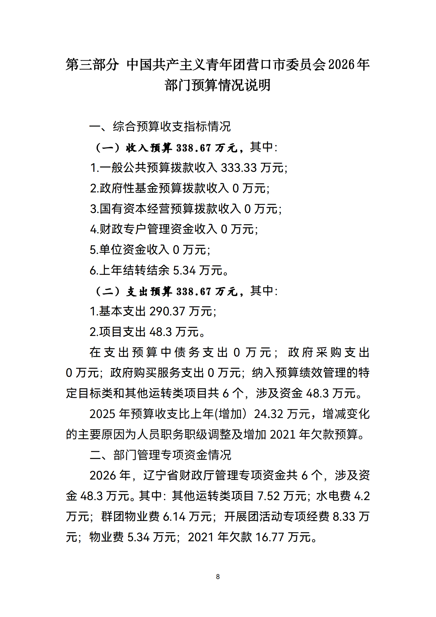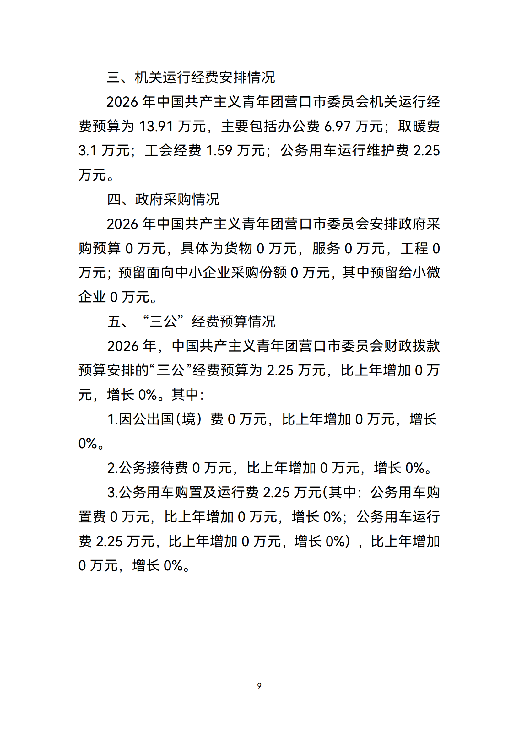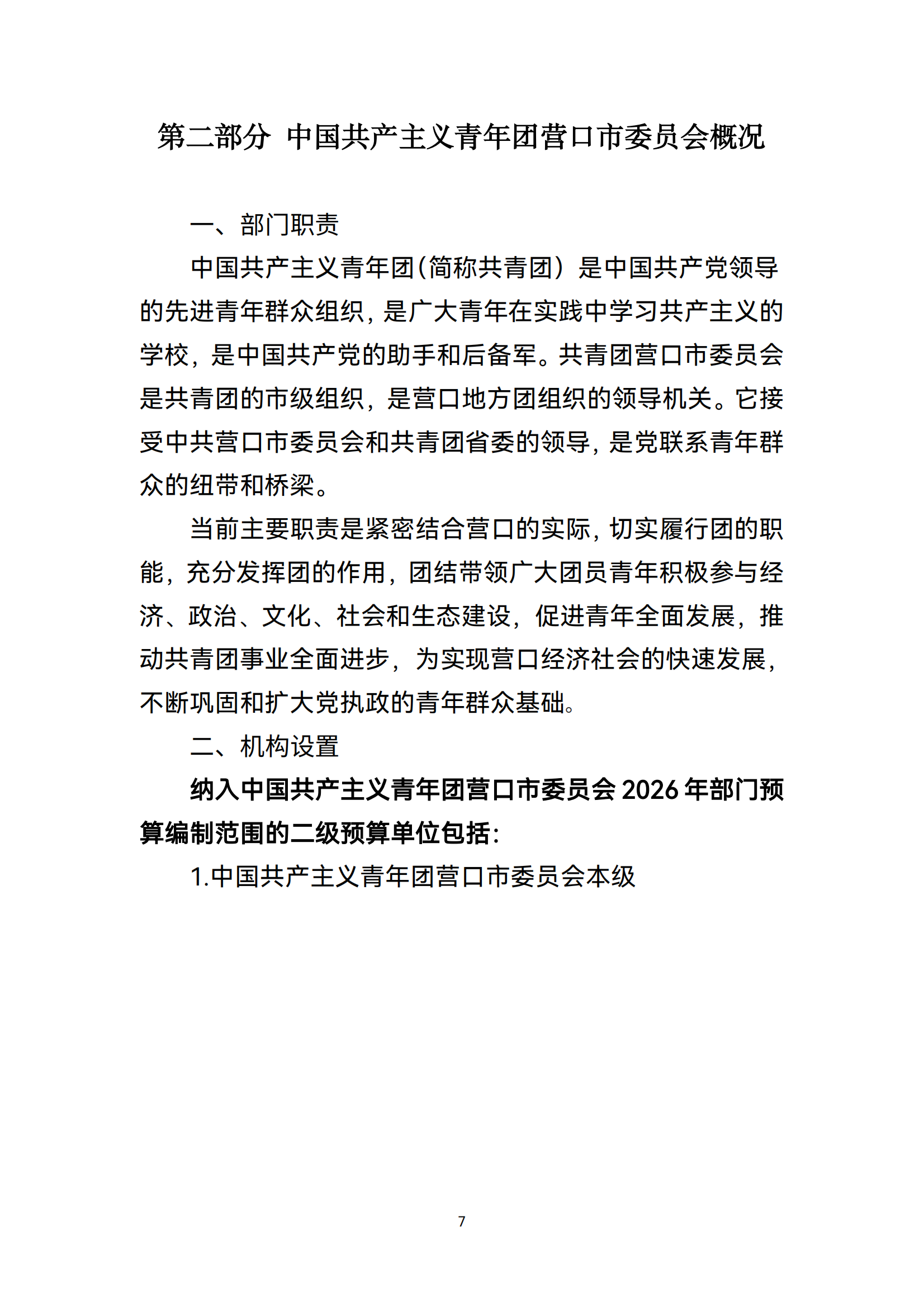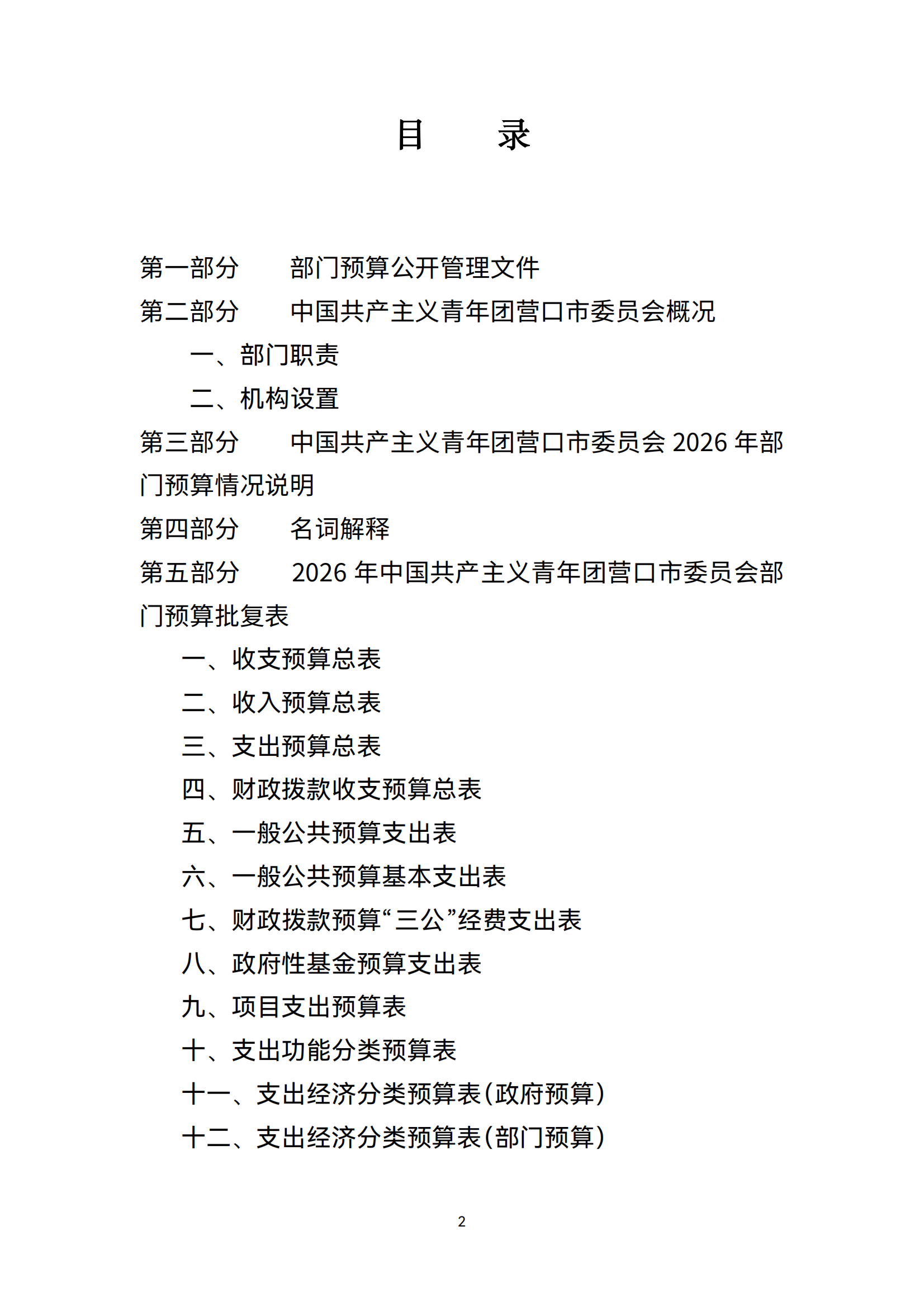 中国共产主义青年团营口市委员会2026年度部门预算